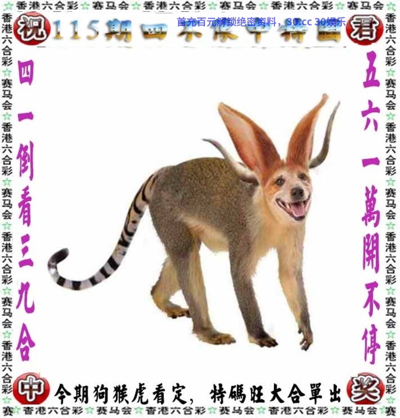 115期:今期狗猴虎看定,特碼旺大合单出开蛇01准 ①杀肖:龙鼠猪 ③大数+合单  |